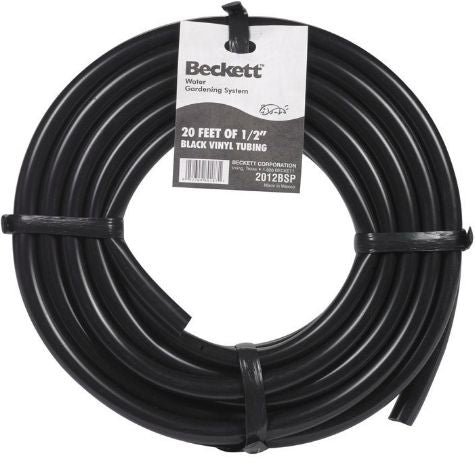 Direct water from your submersible pump to your existing Spitter, fountain head, or biological filter easily using this Beckett fountain & Spitter Black vinyl tubing. This fantastic, 20' Length of tubing is perfect for short runs, & the product easily connects to pumps. The Black color not only blends with your pond liner; It also prevents the tubing from degrading due to ultraviolet rays. Its flexible design allows you to position & curve It as needed, for a truly versatile accessory. Move water from your pond to an exciting feature with this fountain & Spitter Black vinyl tubing. Made in the USA. dimensions: 20 feet long pond tubing. Construction: Vinyl